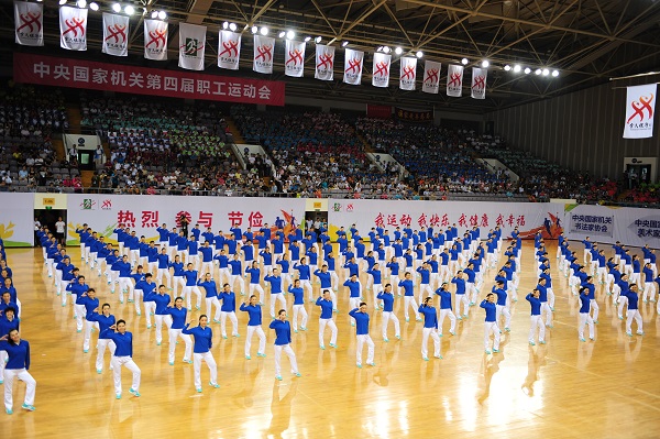 6月29日上午,伴随着《感到幸福你就拍拍手》欢快的音乐,来自中国建设银行基层网点的264名员工,在中央国家机关第四届职工运动会上,同时跳起建行首创的网点员工专属健身操。整齐精准的动作,阳光欢快的笑容,积极向上旋律,引来全场热烈的掌声,成为开幕式上最亮丽的风景。