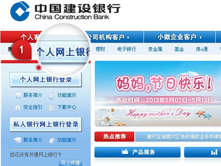 1.登录www.ccb.com页面点击“个人网上银行登录”。
